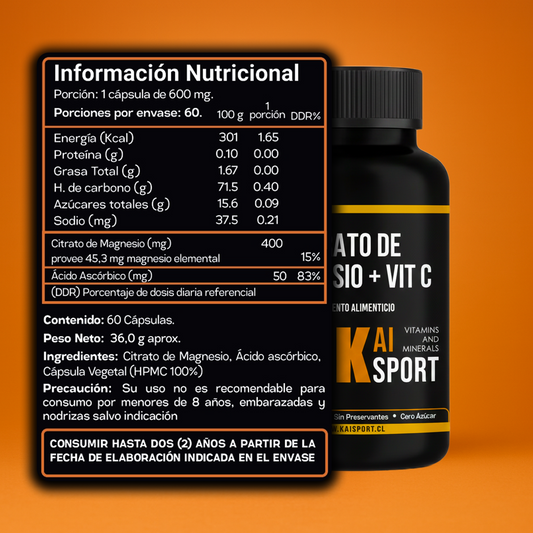 Citrato de Magnesio + Vitamina C + Guía de beneficios y modos de uso Gratis en PDF - 2 meses de Tratamiento 600Mg